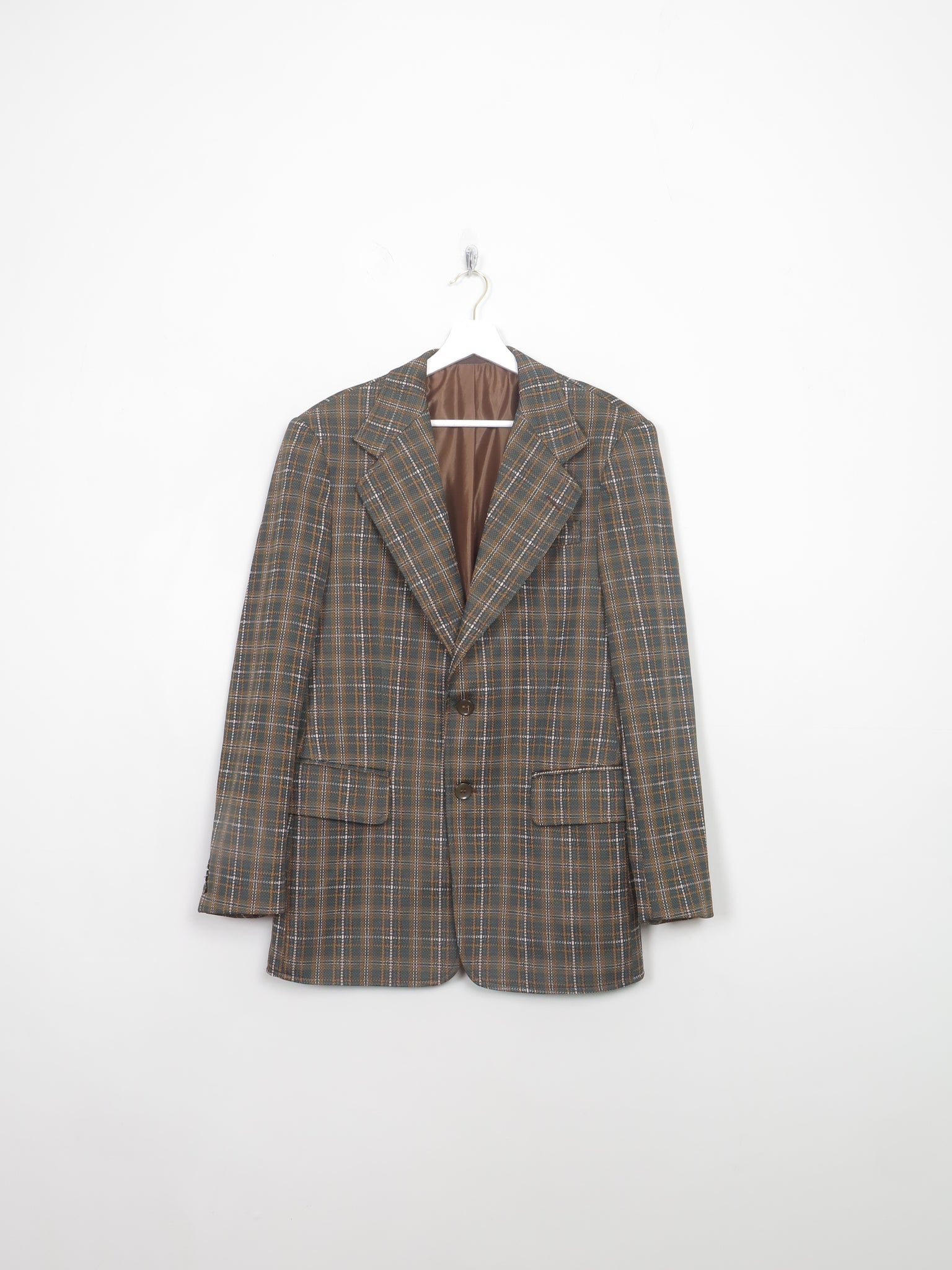 This fun vintage 70s check jacket captures the essence of vintage tailoring with its striking green and brown checked pattern. The lined construction ensures durability and comfort, while the generous 38" length provides classic proportions favoured during the era. A genuine piece of retro menswear that brings authentic period style to contemporary wardrobes. Perfect for collectors and vintage enthusiasts seeking authentic 1970s fashion.