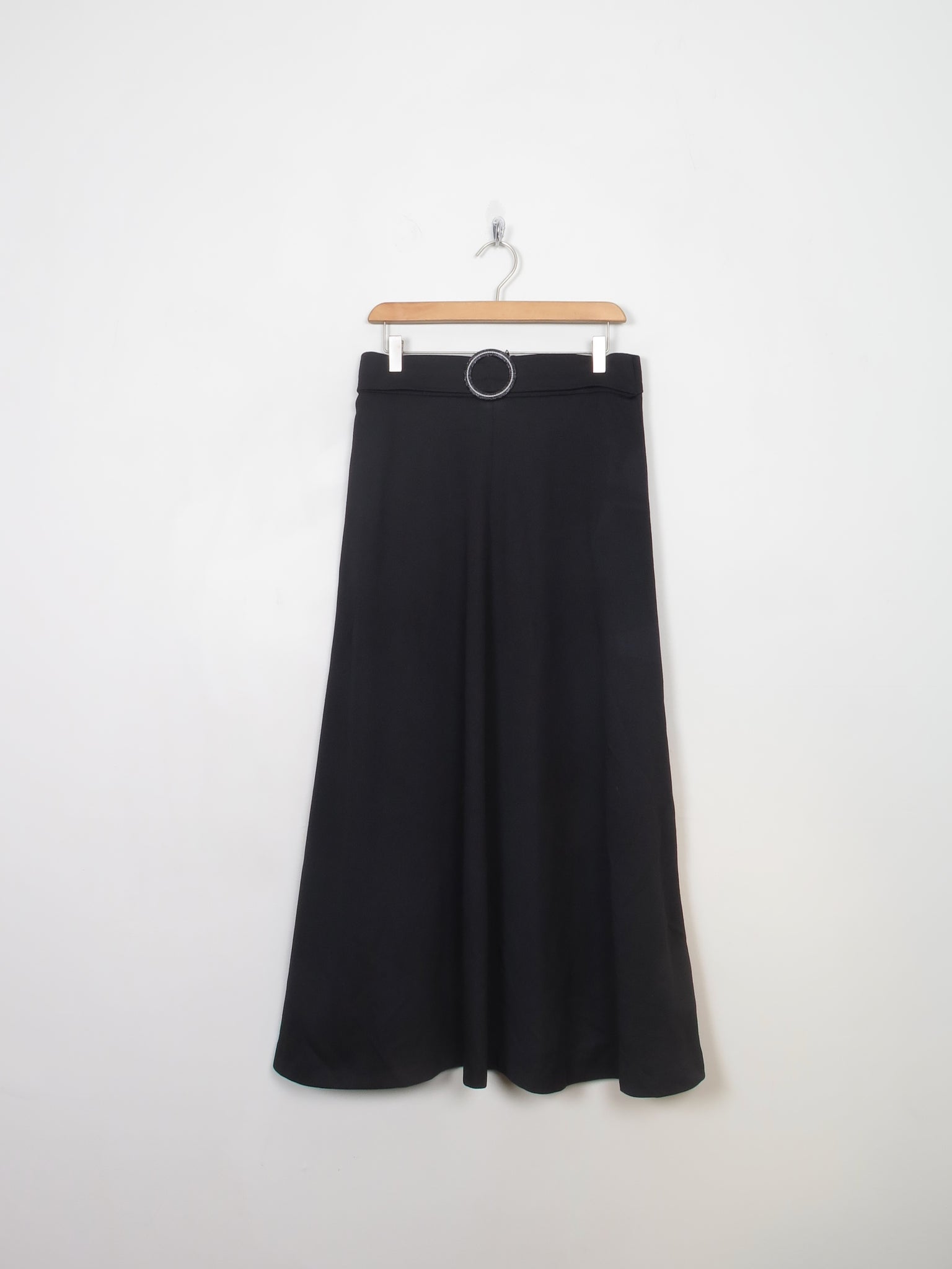 This vintage black skirt exemplifies timeless tailoring with its expertly constructed silhouette. The high, elongated waistband provides refined support, while the attached belt and buckle add authentic period detail, defining the figure beautifully. The internal lining ensures comfort and durability, while the gracefully flared hem creates elegant movement with every step. A quintessential wardrobe staple that transcends seasonal trends, this piece pairs effortlessly with contemporary or vintage-inspired styling for versatile, enduring appeal.