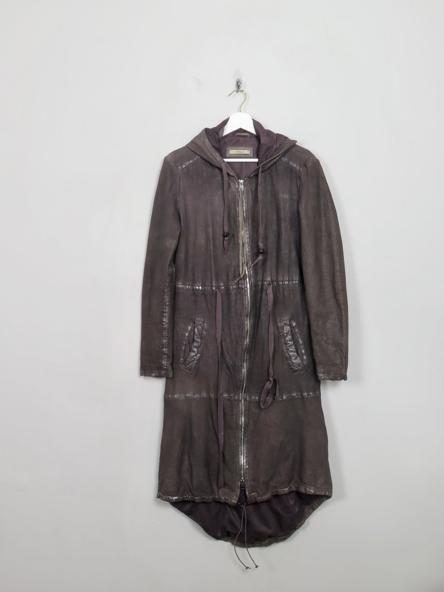 Women's Charcoal Black Leather Hooded Parka Coat S/M