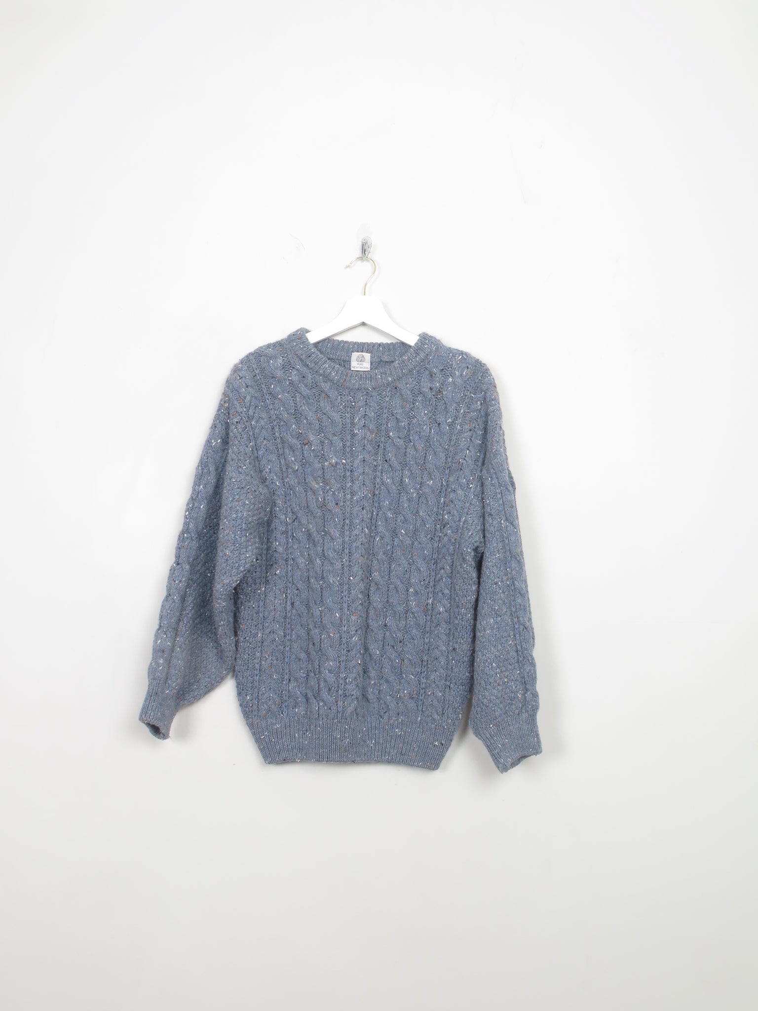 This vintage Irish wool jumper combines timeless craftsmanship with contemporary ease. Crafted from soft melange wool, the cable knit construction delivers classic texture and durability. The slightly cropped silhouette pairs beautifully with high-waisted trousers or skirts, while tapered sleeves create a refined, flattering line. Perfect for layering or wearing solo, this piece brings authentic heritage appeal to your everyday wardrobe.