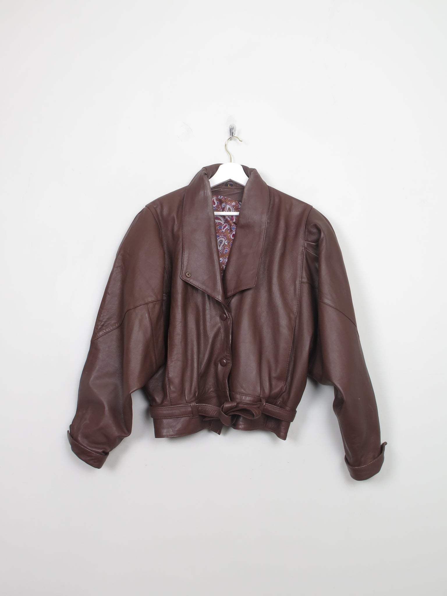 This vintage 80s brown leather jacket showcases a distinctly oversized silhouette with dramatically structured shoulders and generously cut sleeves that define contemporary styling. The tailored lining provides comfort and durability, while an adjustable belt cinches the slightly cropped hem for a refined, intentional fit. Perfect for layering or making a bold statement, this piece balances relaxed proportions with polished detailing—an essential addition to any discerning wardrobe.