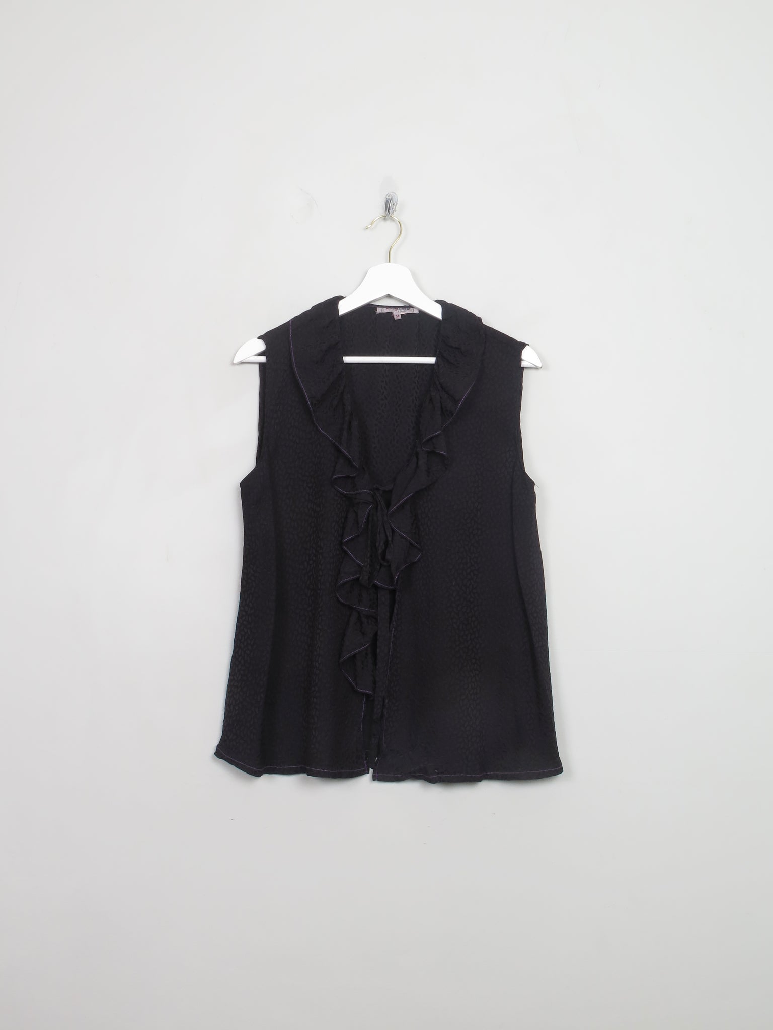 This exquisite Yves Saint Laurent Rive Gauche blouse exemplifies the maison's signature sophistication. Crafted in luxurious silk, the sleeveless design showcases delicate frills that frame the neckline with refined elegance. The patterned fabric adds visual intrigue while maintaining the understated luxury for which YSL is renowned. The open-style silhouette features a single tie closure, allowing for versatile styling and a flattering, adjustable fit. A timeless vintage piece that seamlessly transitions from day to evening wear, perfect for those who appreciate vintage designer craftsmanship and enduring style.
