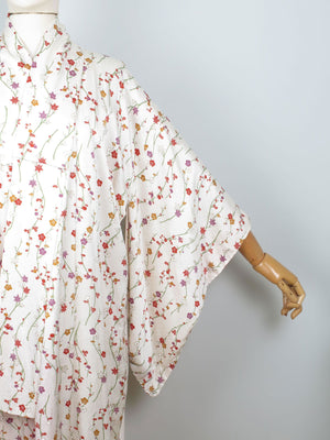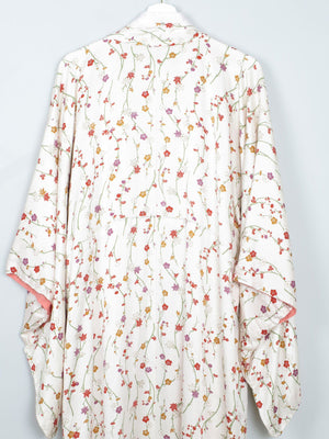 Vintage Cream Silk Colourful Printed Kimono S-L