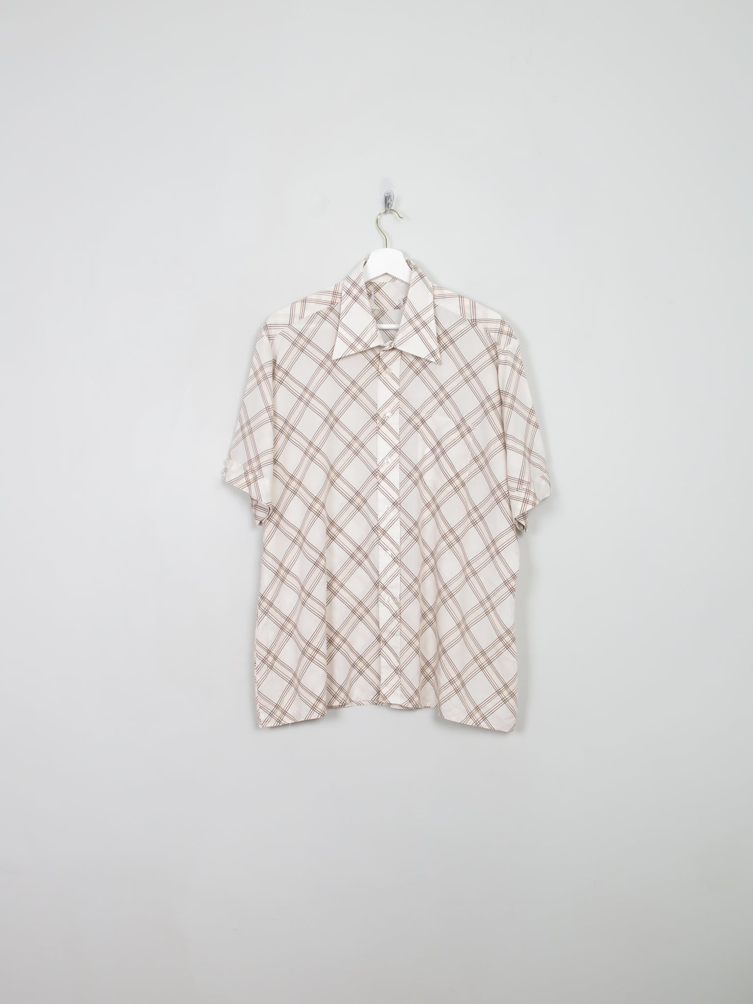 Step into the 70s with this men's vintage short-sleeved shirt. Its cream and brown check pattern captures classic retro style while keeping things light and breezy. Perfect for adding a playful, nostalgic touch to your outfit, this shirt is your go-to for fun, vintage-inspired looks that never go out of style.