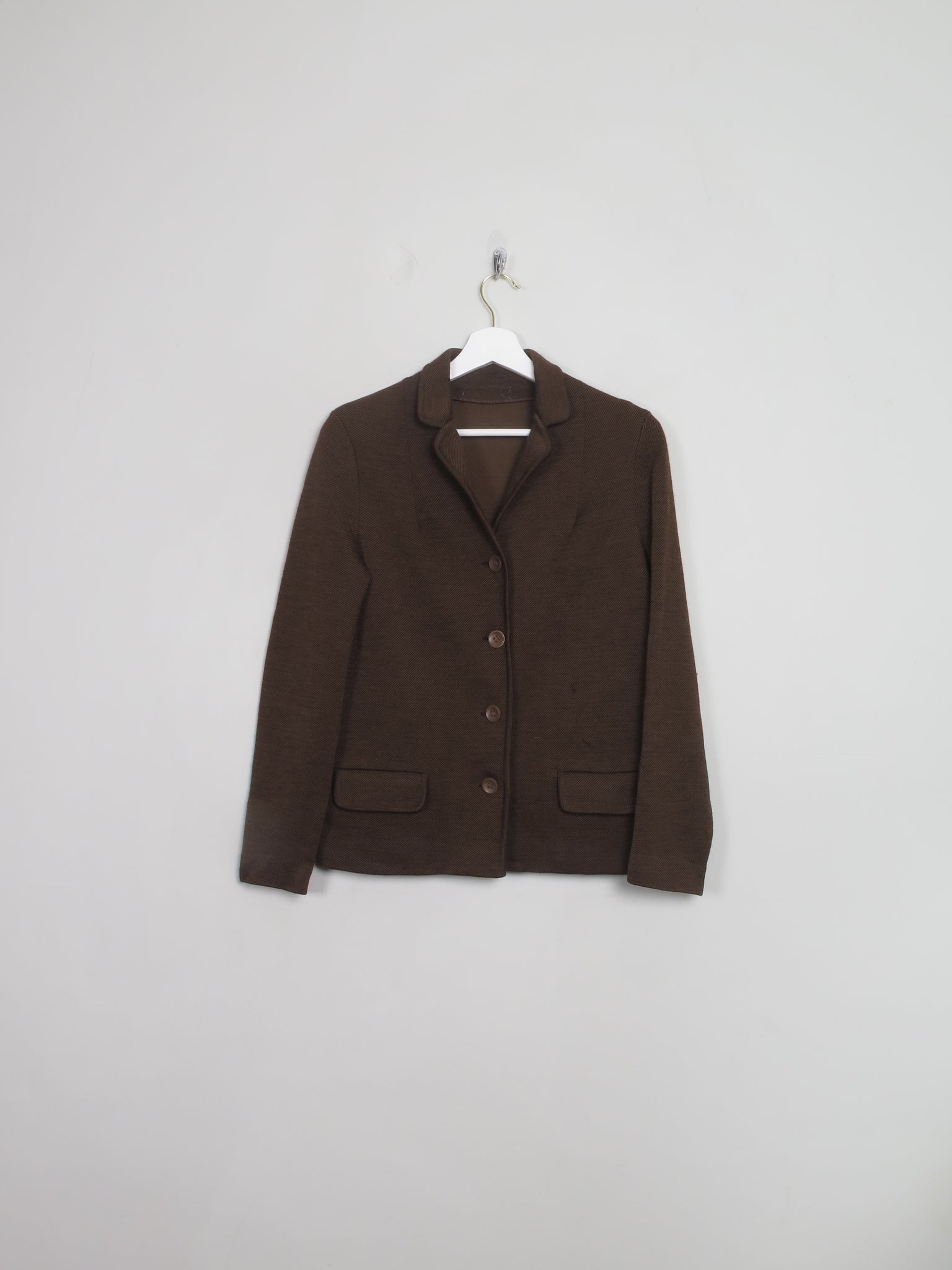 This classic women’s vintage cardi/jacket in size channels the warmth and understated style of the 1960s. Featuring a simple collar and practical pockets, it offers cosy vintage comfort without an inner lining, making it a versatile layering piece. Ideal for those who appreciate timeless design with functional details.